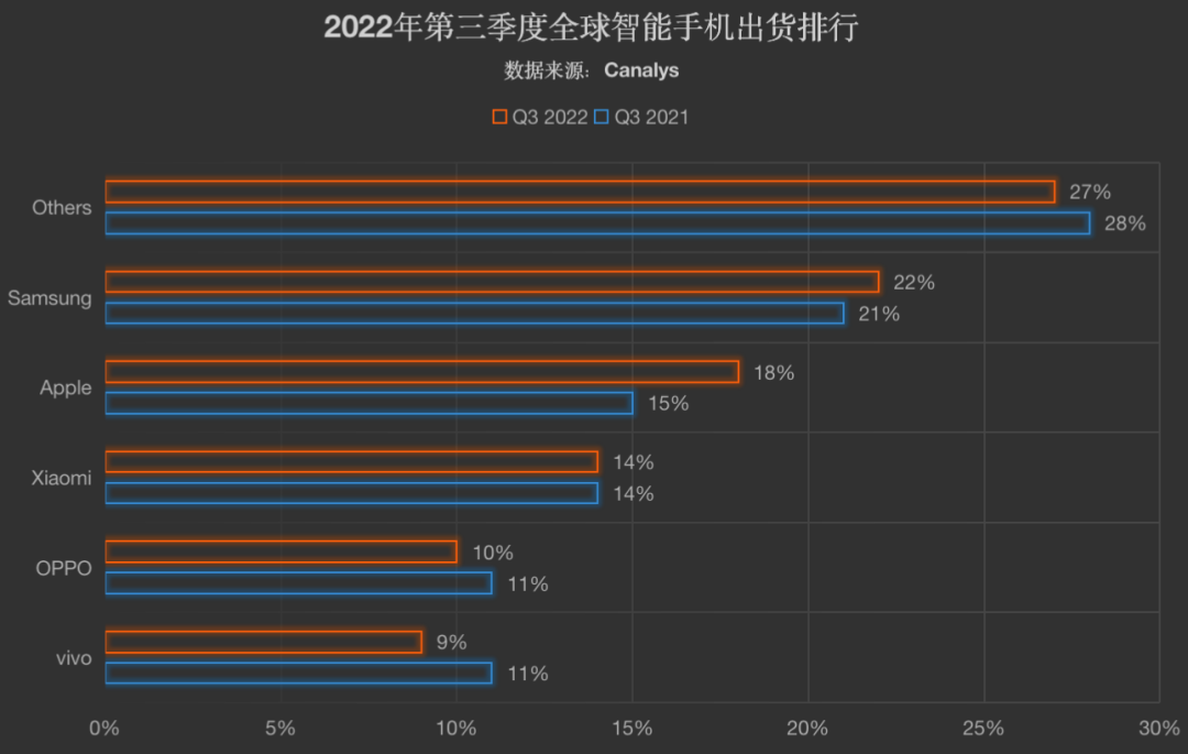 三季度全球手機(jī)份額公布,蘋(píng)果第二、小米第三 |